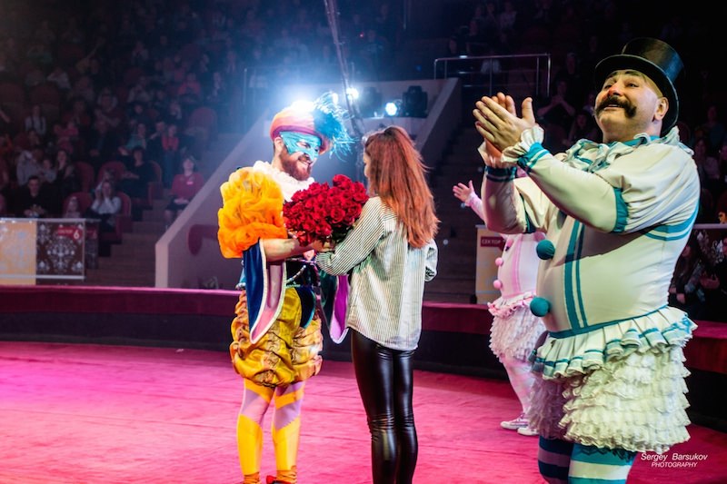 Артист омского цирка акробат Роман Воркутов предложил своей девушке руку и сердце во время циркового номера. Ни о чем не подозревавшую девушку позвали на арену ковёрные. И тут к ней подскочил акробат как был в гриме и актерском костюме с букетом алых роз и заветной коробочкой. Как полагается в таких торжественных моментах Роман встал перед девушкой на колени. Она сказала «да!».
