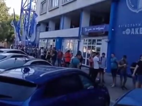 С ночи 25 августа в Воронеже толпы футбольных болельщиков начали занимать очередь у Центрального стадиона профсоюзов и создали беспрецедентное для города скопление людей. Как сообщает "Блокнот Воронеж" в очереди стоят тысячи человек.