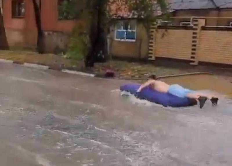 Почти месячная норма осадков выпала в Анапе в последний день сентября во время мощного ливня. Несколько улиц и домохозяйств оказались подтопленными. Но один местный житель использовал стихию в качестве развлечения, поплавав на надувном матрасе прямо по мостовой, сообщает "Блокнот Анапа".