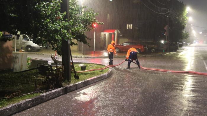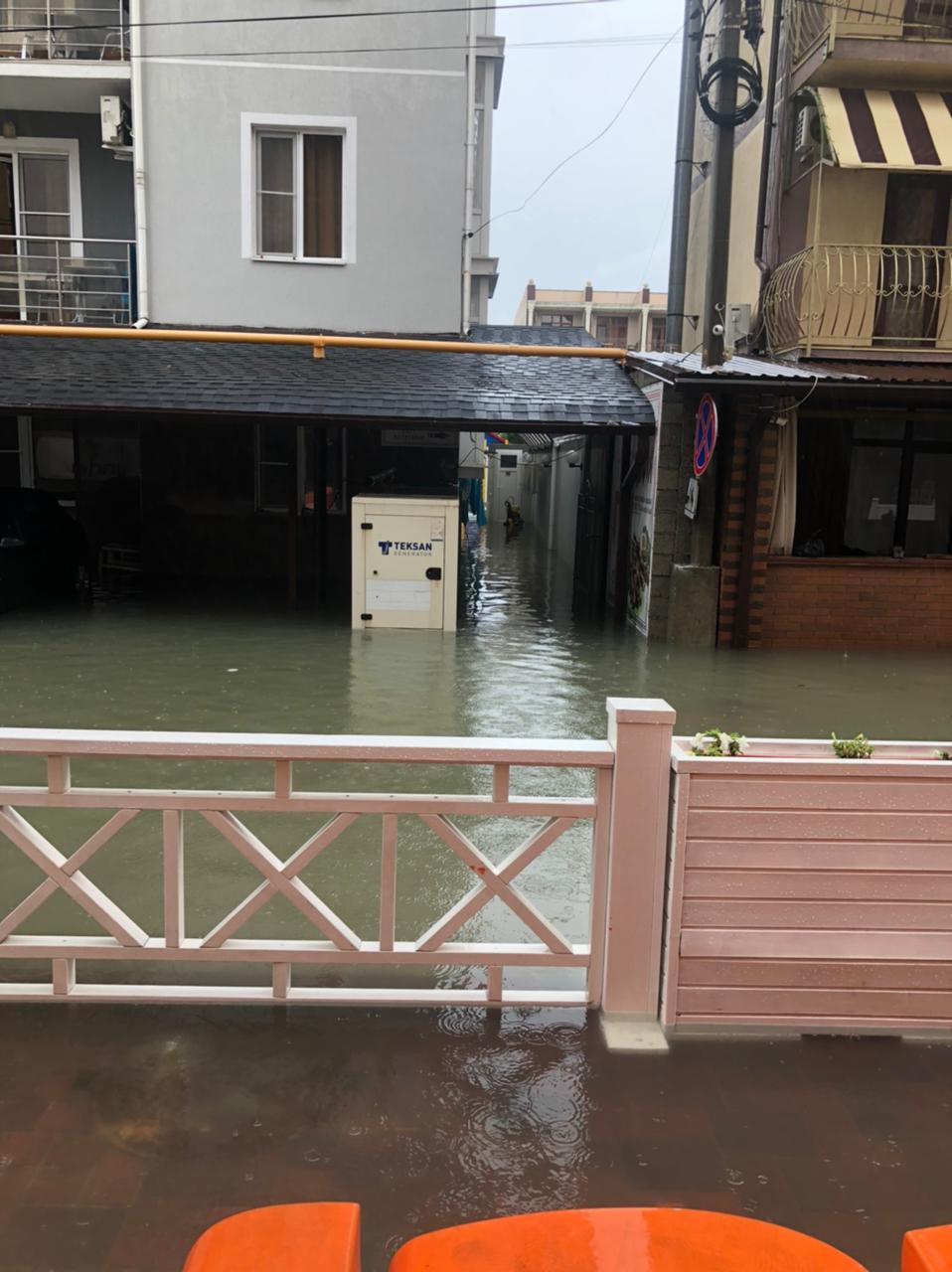 На заполненных водой улицах работают откачивающие мотопомпы, работы идут с 3 часов ночи, однако ливень продолжает заливать улицы и дворы Анапы. Впервые за многие годы уровень грунтовых вод в подвалах анапчан поднимается выше критических отметок.