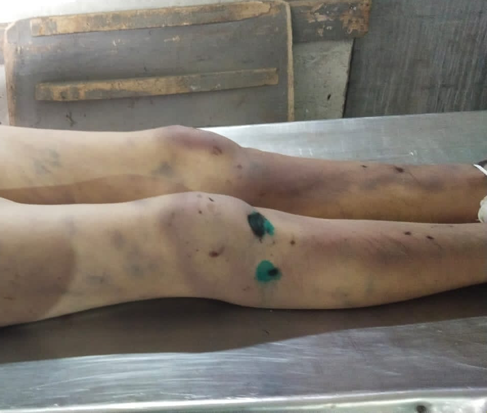 Родители обнаружили на теле сына многочисленные ссадины и гематомы, также на голове они нашли подозрительные нитки. Возможно, проводилась трепанация черепа.