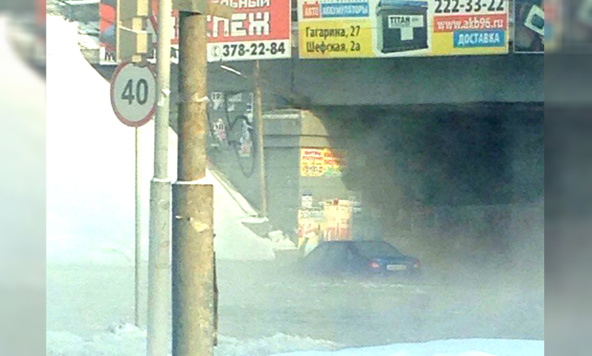 На Рождество, 7 января, в Екатеринбурге произошла авария на теплотрассе - прорвало трубу на перекрестке улиц Малышева и Восточная. Хлынувшая на дорожное полотно через дыру в асфальте горячая вода при температуре -20 градусов замерзла в лед, обездвижив автомобили.