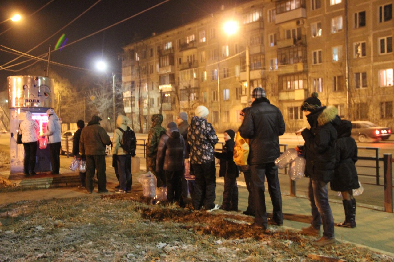 Региональные СМИ сообщают, что жители Твери скупили всю питьевую воду в магазинах. На улицах появились очереди у ларьков с водой.