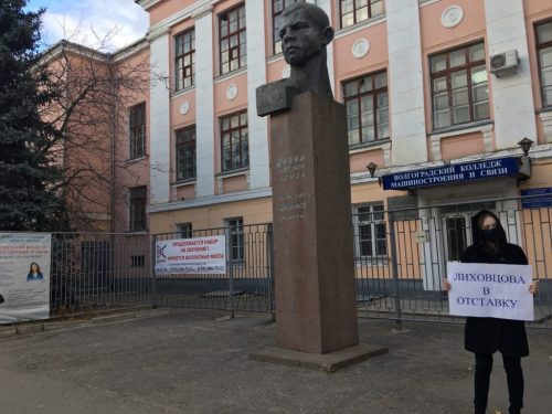 Сегодня пикеты прошли уже у самого колледжа с плакатами, призывающими к отставке его директора Романа Лиховцова. Активисты распространили в СМИ и социальных сетях официальное заявление по инциденту.