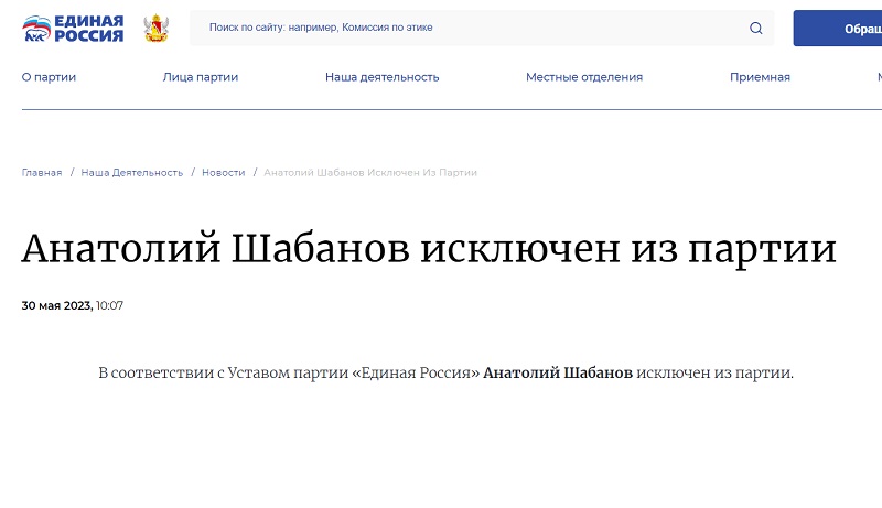 Исключение Шабанова из «партии власти» (без каких-либо официальных комментариев ГИБДД и ЕР) произошло 30 мая, на следующий день после публикации в «Блокнот Воронеж».