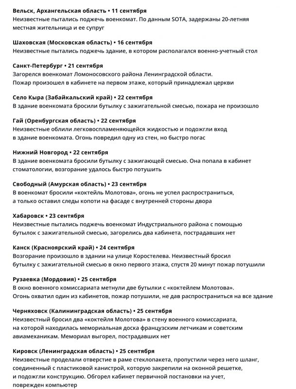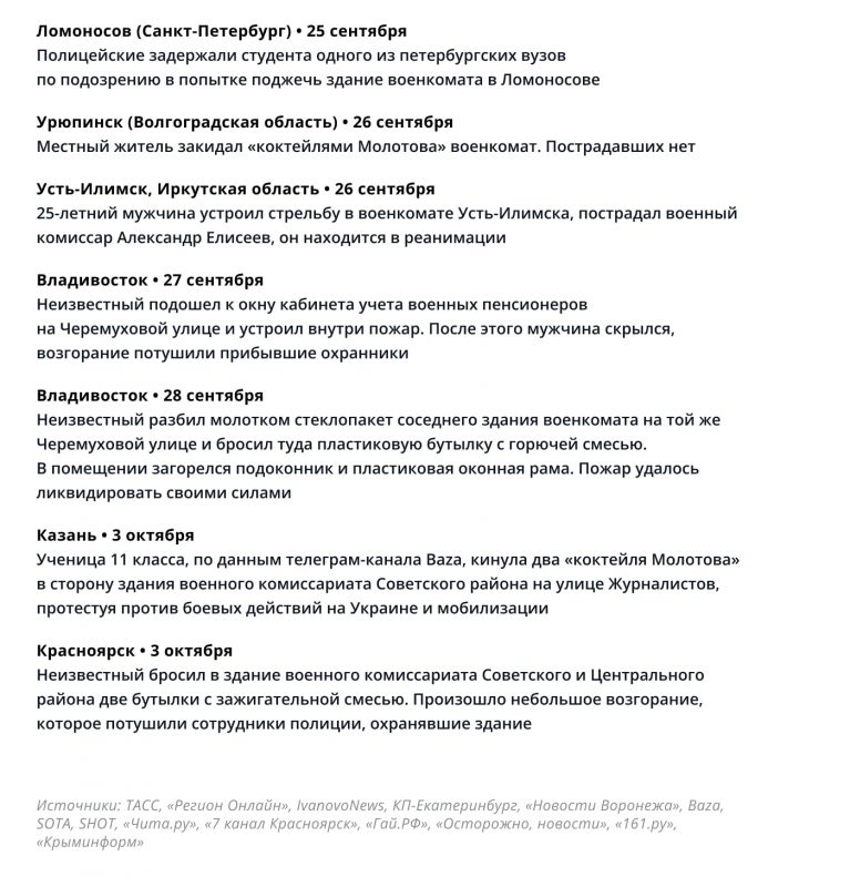 После начала частичной мобилизации 21 сентября частота нападений на комиссариаты увеличилась. Только за сентябрь стало известно минимум о 17 таких инцидентах.
