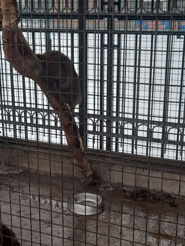 Как рассказала одна из посетительниц заведения, каждый раз ее очень удручает вид так называемого «зоопарка» при кафе «Дворик», расположенного в самом центре города. По словам женщины, в холодной клетке без подстилок, разделенной напополам, теснятся несколько енотов — животные выглядят грязными и голодными, пушистым приходится находиться на мокром голом полу, не лучше условия содержания и у местных филинов.