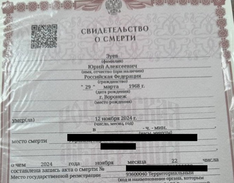 Юрий Зуев до подписания контракта работал водителем скорой помощи. Маргарита узнала о его смерти 20 ноября, когда тело прибыло в Воронеж, и получила свидетельство о смерти, назначив похороны на 25 число.