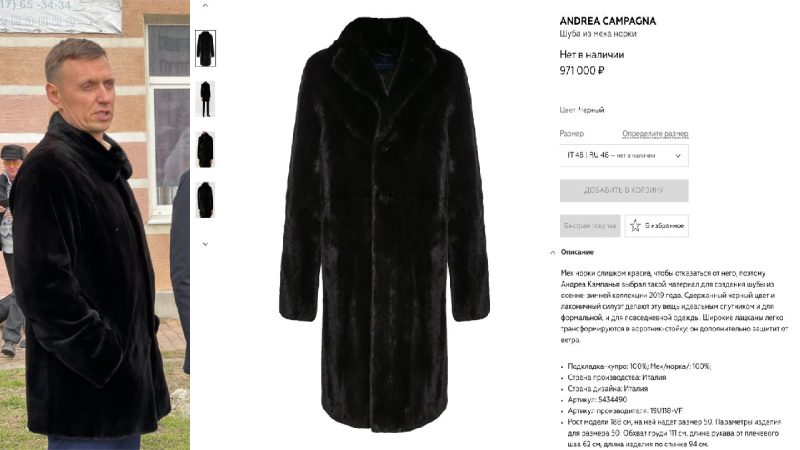 В Telegram-каналах накануне разошлось фото, на которой мэр Новороссийска изображен в черной норковой шубе. Пользователи предположили, что это та самая шубка из ЦУМа бренда Andrea Campagna, цена которой составляет 971 тысяч рублей. Несмотря на высокую стоимость, сейчас этой шубы уже нет в наличии.