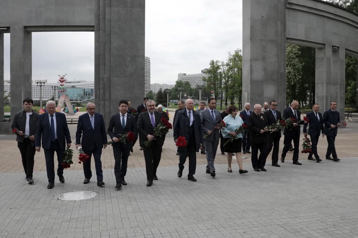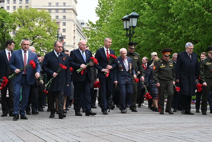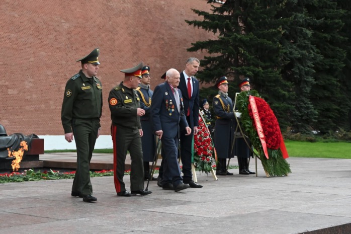 В торжественной церемонии приняла участие делегация Исполнительного комитета Содружества Независимых Государств. Представители Исполкома СНГ и дипломаты Посольства возложили цветы к Могиле Неизвестного Солдата, стелам городов-героев в Александровском саду, почтив память павших в Великой Отечественной войне минутой молчания.