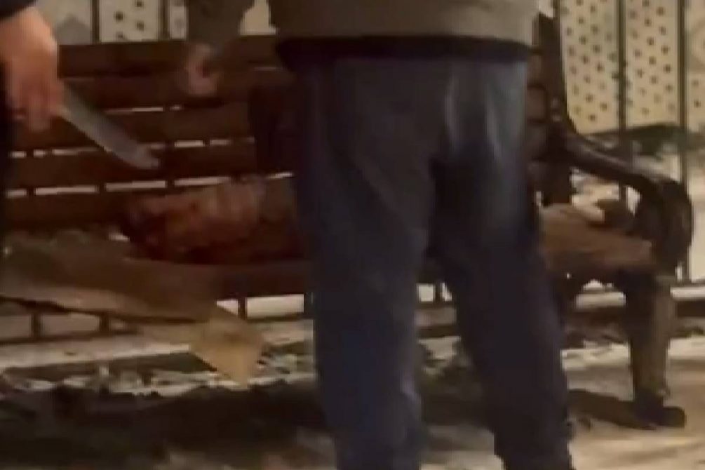 Подойдя ближе, девушка увидела, что прямо на территории площадки четверо мужчин разделывают тушу барана. Мясо рубили на обычной деревянной лавочке, предназначенной для мам с детьми. Рядом лежали ножи и топор, а сама площадка была залита кровью. Увиденное, по словам блогера, больше напоминало импровизированную бойню, чем двор жилого дома.