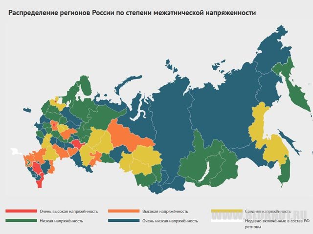 Первый рейтинг межэтнической напряженности составлен Центром изучения национальных конфликтов вместе с «Клубом регионов». С сентября 2013 года по март 2014 года составители карты «насчитали» свыше 570 этнически мотивированных действий.