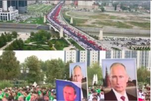 Сто тысяч человек прошли по улицам столицы Чечни, создав живой триколор, в честь дня рождения президента России Владимира Путина.