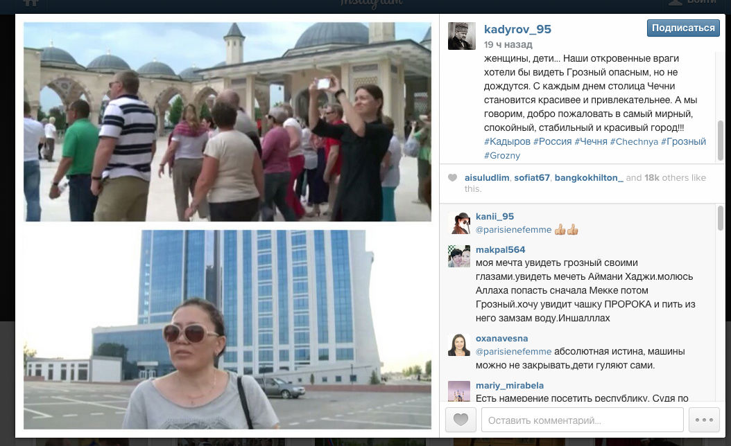 «Тысячи туристов со всей России и других стран приезжают в Чечню. Ежедневно они осматривают достопримечательности Грозного, Аргуна, Гудермеса, совершают поездки в горные районы. И никто не остается равнодушным. Уезжают с твердым намерением снова и снова посещать Чечню. И сегодня, видя в Аргуне и Грозном туристов, я подумал, есть ли совесть и честь у тех, кто в Лондоне назвал Грозный одним из самых опасных городов Европы. В опасный город едут только экстремалы, а среди наших гостей учителя, врачи, студенты, женщины, дети... Наши откровенные враги хотели бы видеть Грозный опасным, но не дождутся. С каждым днем столица Чечни становится красивее и привлекательнее. А мы говорим, добро пожаловать в самый мирный, спокойный, стабильный и красивый город!», - написал Кадыров в Instagram.