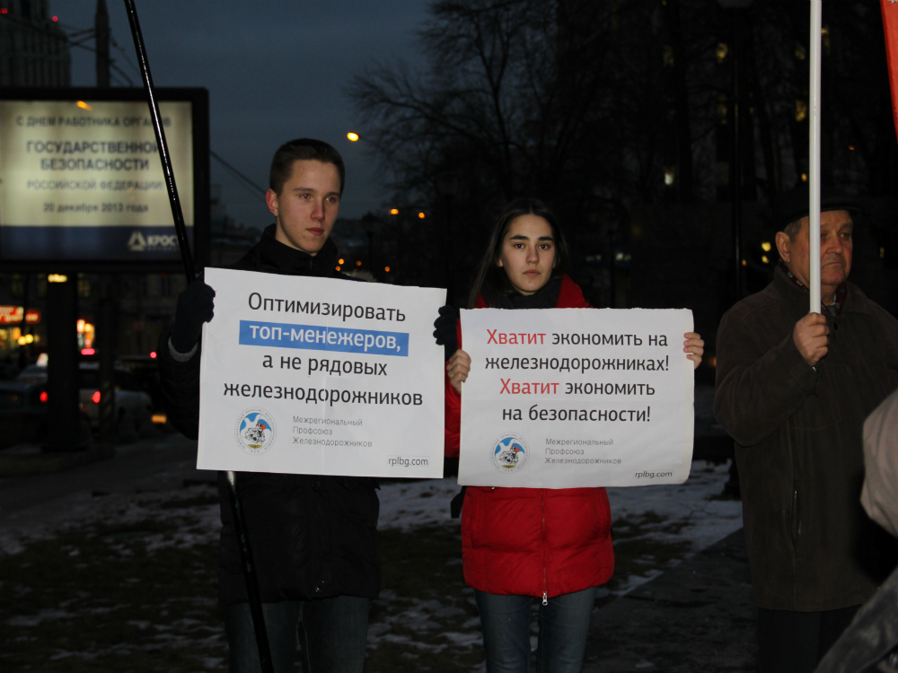 Ораторы отмечали, что этим летом на РЖД прошли незаконные сокращения. Кроме того, урезана зарплата машинистов, а ремонтники переведены на четырехдневную рабочую неделю. В результате объем работы у ремонтников не уменьшился, а официальное число часов, по которым им рассчитывается зарплата, было снижено.