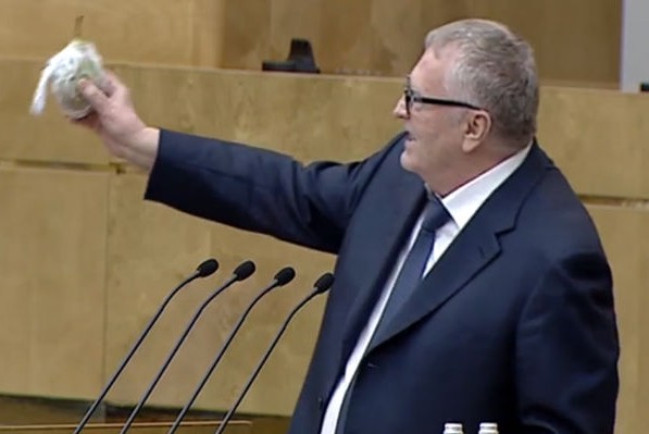Лидер фракции «ЛДПР» Владимир Жириновский на своем выступлении перед правительством как всегда не обошелся без перфомансов в собственном стиле. Дабы показать Медведеву и коллегам, насколько слабо в России следуют курсу импортозамещения, одиозный политик показал депутатам салфетку и грушу, которые закупают «где-то в Швейцарии».
