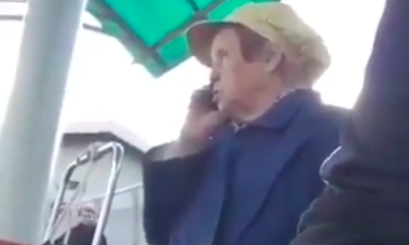 На записи видно и слышно, как эта бабушка с кем-то разговаривает по телефону и обсуждает игру россиян.