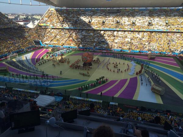 В Бразильском городе Сан-Паулу на стадионе «Арена Коринтианс» началась церемония открытия чемпионата мира по футболу-2014