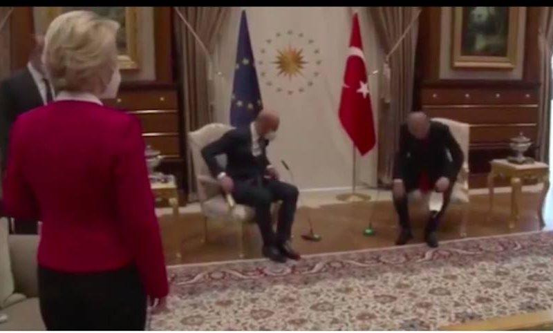 В МИРЕВо время визита в Анкару неожиданно вдруг кресло возле президента Эрдогана занял коллега женщины - глава Европарламента, хотя ее должность выше.