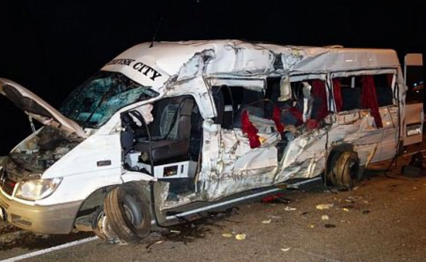 Три человека погибли, восемь получили ранения при столкновении микроавтобуса и грузовика.
