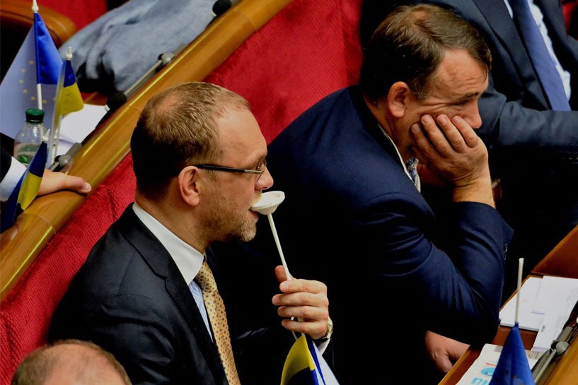 Украинский фотожурналист Богдан Бортаков, работающий в Верховной Раде Украины, часто ловит депутатов за «веселым занятием». Как-то героем его «фотошедевра» стал новый министр обороны Украины Валерий Гелетей, который подписал документ, забыв снять с ручки колпачок. А сегодня фотограф поймал Сергея Власенко за «жвачным процессом».