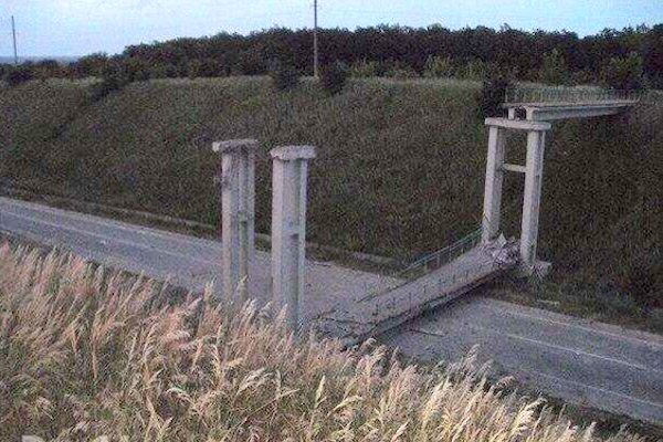 Взорван мост у монумента Князя Игоря, движение по трассе в Луганск перекрыто.
