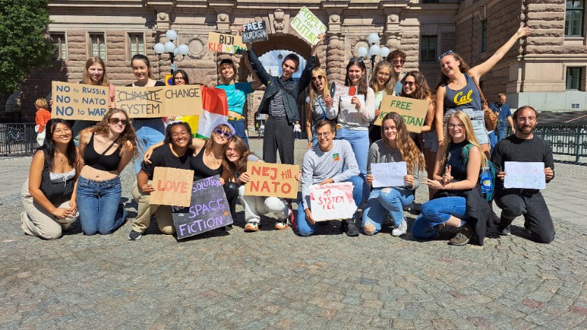 Таким образом Грета вместе со своими друзьями протестует против вступления ее страны в Североатлантический альянс. Акция была проведена во время стокгольмской выставки, организованной Fridays For Future («Пятницы для будущего»).