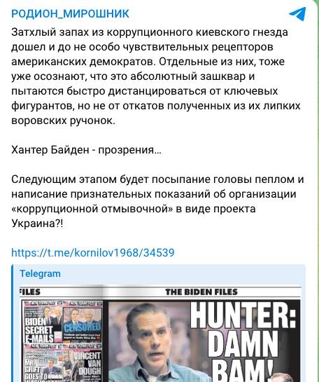 «Я был очень наивен в отношении того, каким рассадником зла является Украина. Какой же это абсолютный, просто невероятный уровень коррупции, который до сих пор поражает воображение», — откровенничает с New York Post Хантер Байден.