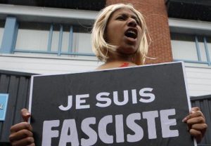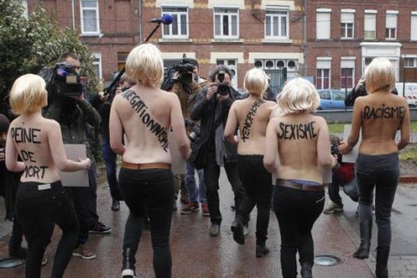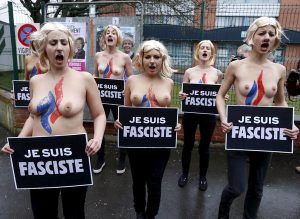 Шесть девушек собрались у штаб-квартиры партии «Национальный фронт» в городе Энен-Бомон, чтобы «приветствовать» лидера партии Марин Ле Пен, которая голосовала на местных выборах. Активистки нарисовали на голой груди логотип «Национального фронта», а на лицах - усы Адольфа Гитлера. В руках девушек были таблички Je suis Fasciste («Я – фашист»).