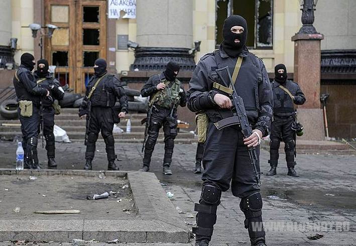 Отметим, что милиционеры выходят из здания мэрии. У них забирают жилеты и каски, которые, как оказалось, были сделаны из поролона и резины, т.е. не настоящие. Также известно, что милиционеры, которые охраняли администрацию города, практически сразу отдали здание мэрии митингующим, сторонникам федерализации.