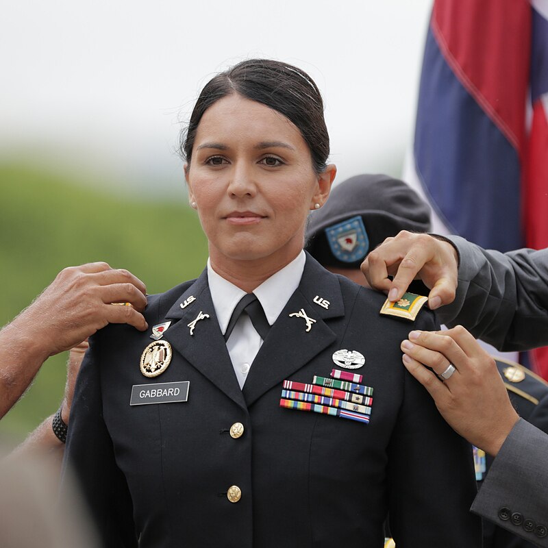 Габбард служила в армейском резерве более двух десятилетий и была направлена в несколько зон боевых действий. Она также восемь лет работала в комитетах Палаты представителей по иностранным делам и вооружённым силам.