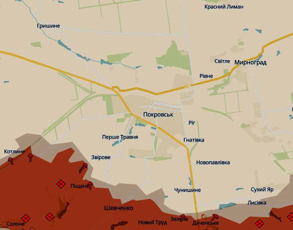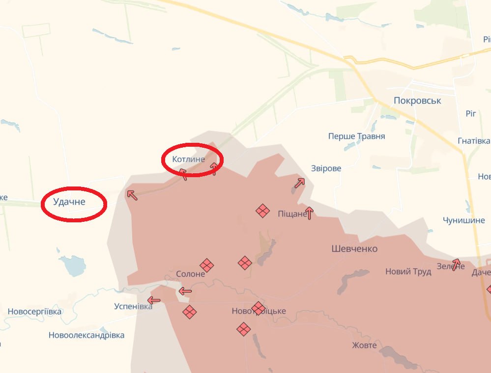 Тем временем армия России прорывается южнее Покровска, штурмуя Удачное и Котлино.