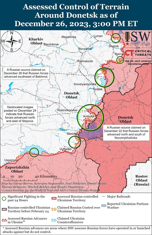 «Российские подразделения продвинулись в районе села Степовое (к северо-западу от Авдеевки), на северных окраинах Опытного (к юго-западу от города) и в промышленной зоне к юго-востоку от Авдеевки», - уточняют военные эксперты.