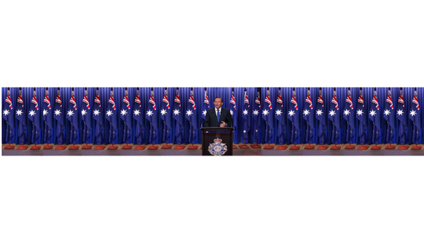 Эбботт, собственно, объявил о том, что в Ирак будут дополнительно направлены 300 австралийских военнослужащих, но не это врезалось в память телезрителей, а количество флагов, на фоне которых вещал Эбботт. Такого не было за всю историю страны.