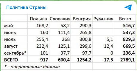 Нет, конечно же, Незалежную без газа не оставили. Как следует из графика, представленного телеграм-каналом украинского издания «Политика Страны», за 10 дней сентября, то есть вплоть до вчерашнего дня, в страну поступило 236 млн кубометров. Только вот «азербайджанского» там не было. Румыния перекрыла кран. Издание не исключает, что это могло быть связано с повреждением газотранспортной инфраструктуры на границе с Молдавией и Румынией. Но, как известно, повреждение было гораздо раньше, и в августе газ по трубе еще прокачивали, причем до конца месяца.