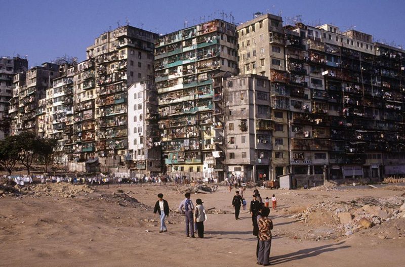 Сотни тесно прижавшихся друг к другу многоэтажек. Узкие проходы между ними, не знавшие солнечного света. Дети, за неимением альтернативы игравшие на крышах зданий. Царство тайных триад, опиумные притоны и дома терпимости. Здесь, на небольшом участке размерами 210 на 120 метров, проживало около 33 тыс. человек, или почти 2 человека на один квадратный метр. Это абсолютный рекорд плотности населения на земле. Для сравнения, если бы такая плотность заселения была в Москве, с ее площадью примерно 2500 квадратных километров, то в российской столице жило бы больше трёх миллиардов человек, то есть все население Китая, Индии и США вместе взятых.