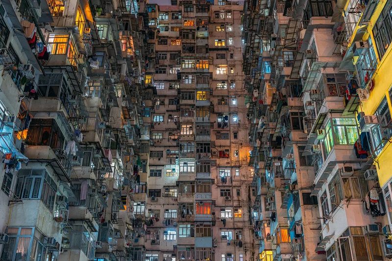 Большинство жителей ютились в небольших квартирках средней площадью 23 кв. м. Распространение получили разнообразные пристройки к внешним и внутренним фасадам зданий. Те окончательно срастались, в районе образовалась даже вторая, параллельная наземной, система переходов уже на некоторой высоте от земли. Коулун превращался в единый цельный организм, огромную «коммунальную квартиру», здание-город, словно пришедший в настоящее из постапокалиптического будущего.