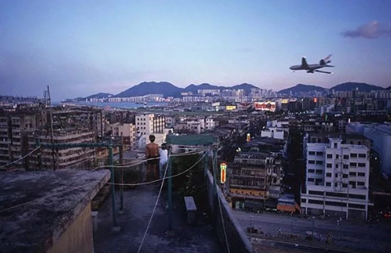 На крышах Коулуна тоже кипела жизнь. Помимо телевизионных антенн здесь располагались бельевые веревки, резервуары для воды и контейнеры для мусора. Здесь нередко отдыхали взрослые и дети. Создавалось впечатление что город вот-вот рухнет под тяжестью собственного веса. Над крышами летали огромные самолеты, до которых было подать рукой. Специфика захода на посадку в аэропорт Кай Так, тот самый, на строительство которого пошли крепостные стены Коулуна, требовала от пилотов совершать сколь опасный, столь и эффектный разворот непосредственно перед приземлением. Начинался он на высоте 200 метров, а заканчивался уже на 40, и где-то посередине этого сложнейшего для пилотов маневра находился ощетинившийся многоэтажками Коулун.