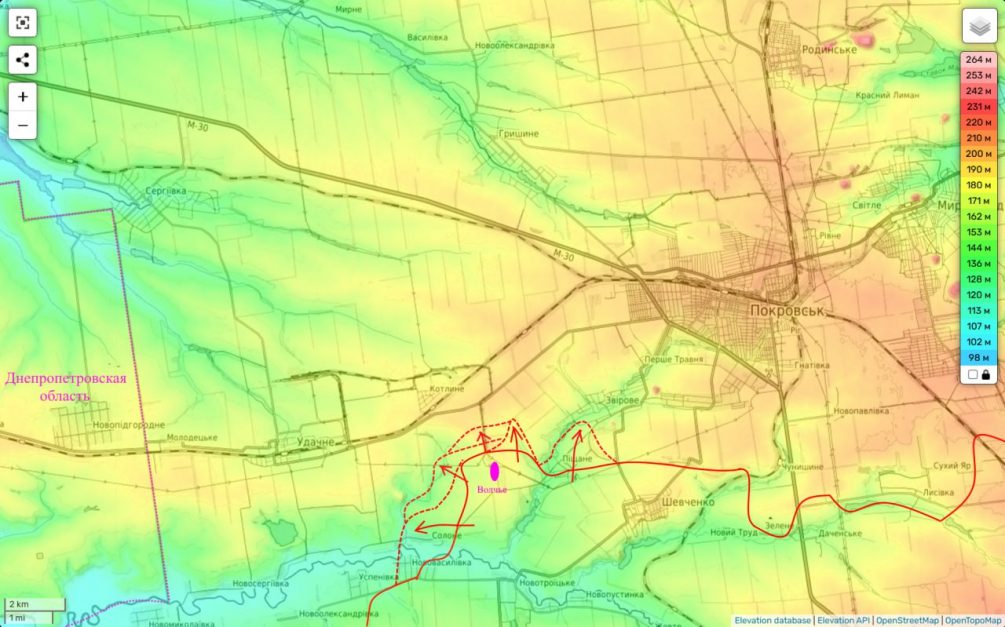В районе Красноармейска действует элитное российское подразделение беспилотных летательных аппаратов (БПЛА) под названием «Судный день». Украинский офицер с позывным Алекс сообщил в своём Telegram-канале, что FPV-дроны этого подразделения могут поражать цели на расстоянии свыше 20 километров, что создаёт значительные трудности для логистики украинской армии.