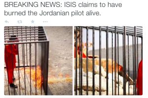Боевики ИГ опубликовали видео, в котором заявили о казни иорданского пилота, сбитого в небе над Сирией в конце декабря 2014 года. Официального подтверждения подлинности данных фотографий пока не последовало.