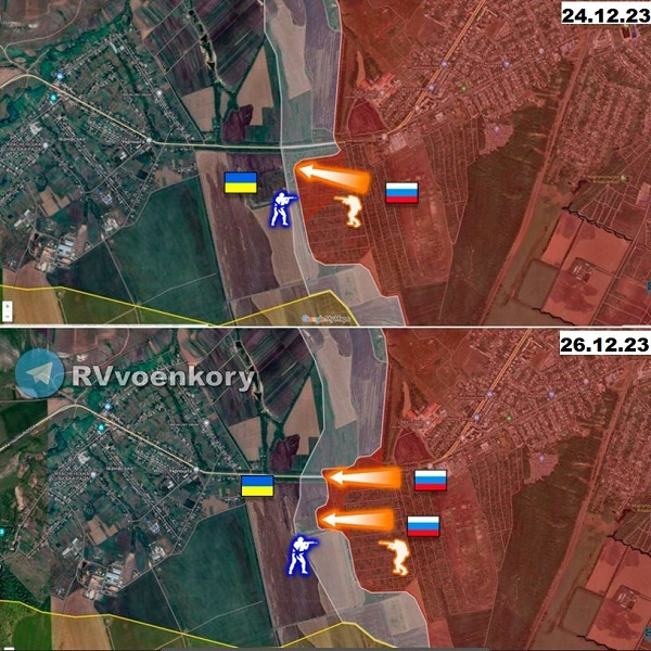 «Продвинулись в районе кладбища северо-восточнее Поповского леса на участке шириной до 660 м на глубину до 580 м», - сообщают военкоры.