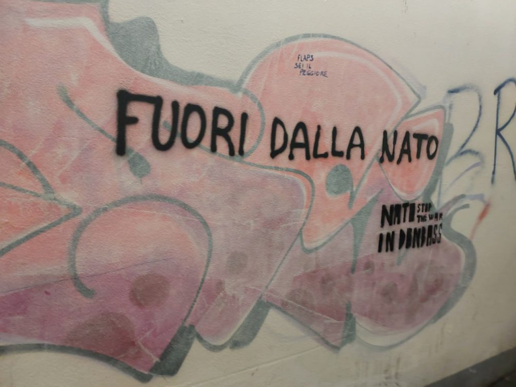 Сразу в нескольких итальянских городах появились граффити с надписями: «Деньги на госпитали и школы, а не на Зеленского!» , «Все нацисты - клоуны!», «Нет НАТО!» , «НАТО, останови войну на Донбассе!».