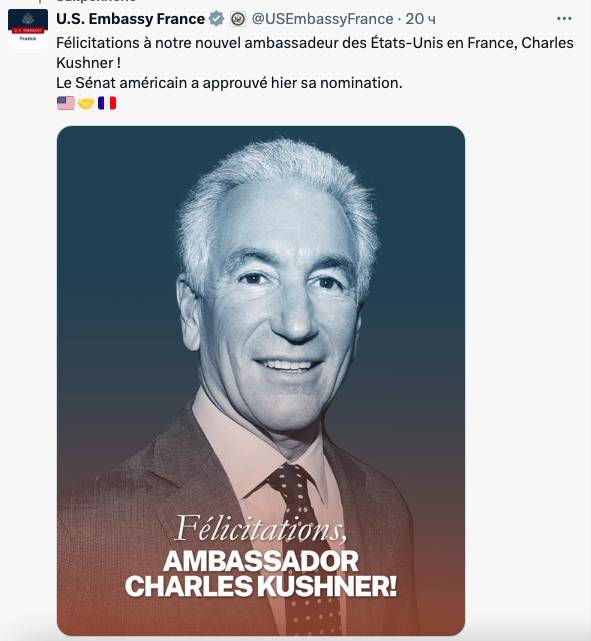 Американский лидер объявил о новых назначениях. Так, Чарльз Кушнер занял пост посла США во Франции. Немаловажная деталь: Чарльз Кушнер – родня, его сын Джаред Кушнер женат на дочери Трампа Иванке. Во время первого срока президента Дональд Трамп пристроил кума в свои старшие советники. 47-й президент США называет Чарльза Кушнера «великим бизнес-лидером, филантропом и посредником, который будет ярым защитником, представляющим нашу страну и интересы».