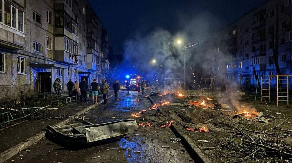 Один из самых жёстких ударов пришёлся по Ставропольскому краю. В Будённовске украинский беспилотник рухнул между жилыми домами. Официальных данных о пострадавших на момент публикации не поступало, но на фото видно, что в пятиэтажном доме на первом этаже выбиты окна и вырваны рамы. На месте работали пожарные, жителей эвакуировали.