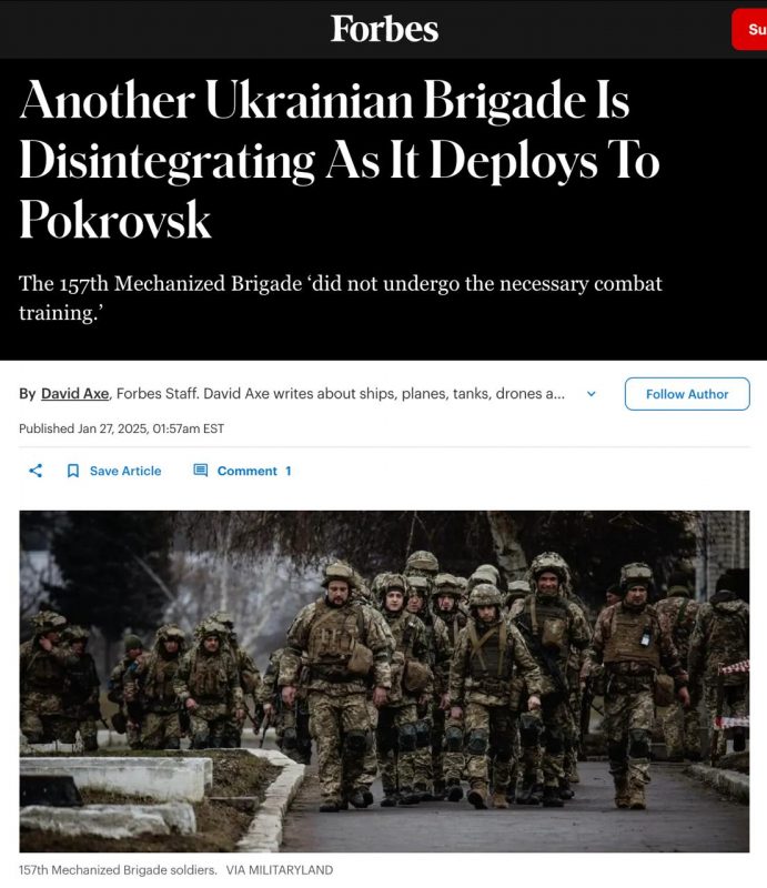 Как утверждает военный портал Militaryland, обстановка в 157-й механизированной бригаде отражает ситуацию в других бригадах 150-й серии. Мобилизованных сразу же бросили в пекло, бригада понесла потери, личный состав начал разбегаться. Всего в ВСУ насчитывается 8 подобных подразделений, которые были созданы в 2023 и начале 2024 года. На передовую они начали прибывать в конце прошлого года.
