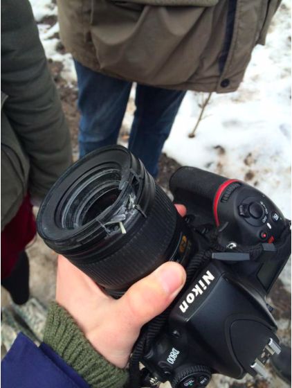 Редакция обратила внимание, что фотоаппарат у корреспондента в момент взрыва закреплен над поясом с правой стороны, и если бы не техника, то журналист получил бы серьезное ранение в область печени, возможно даже и с летальным исходом.