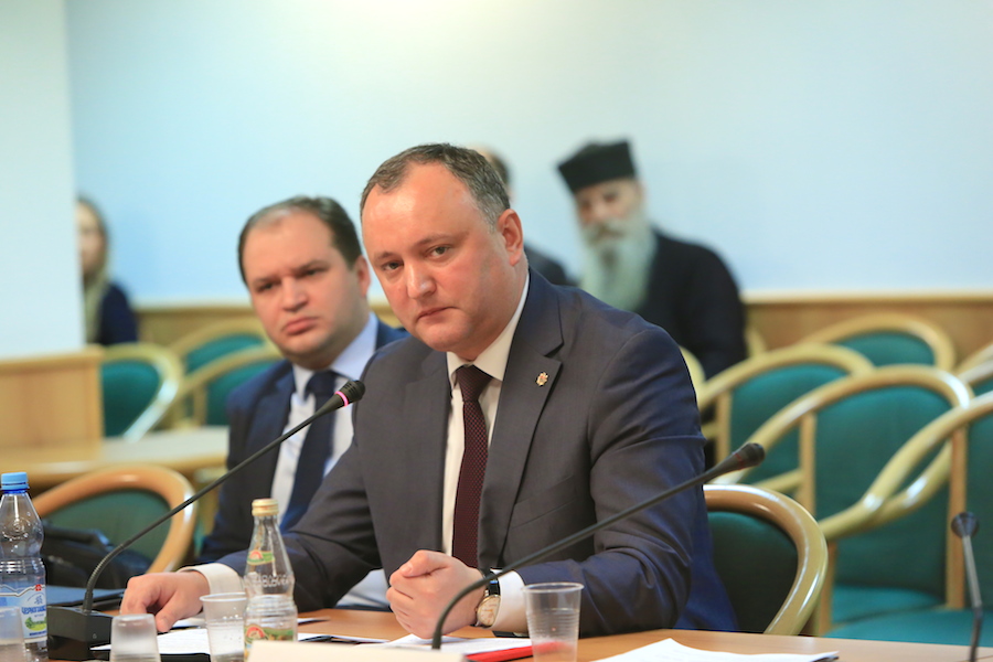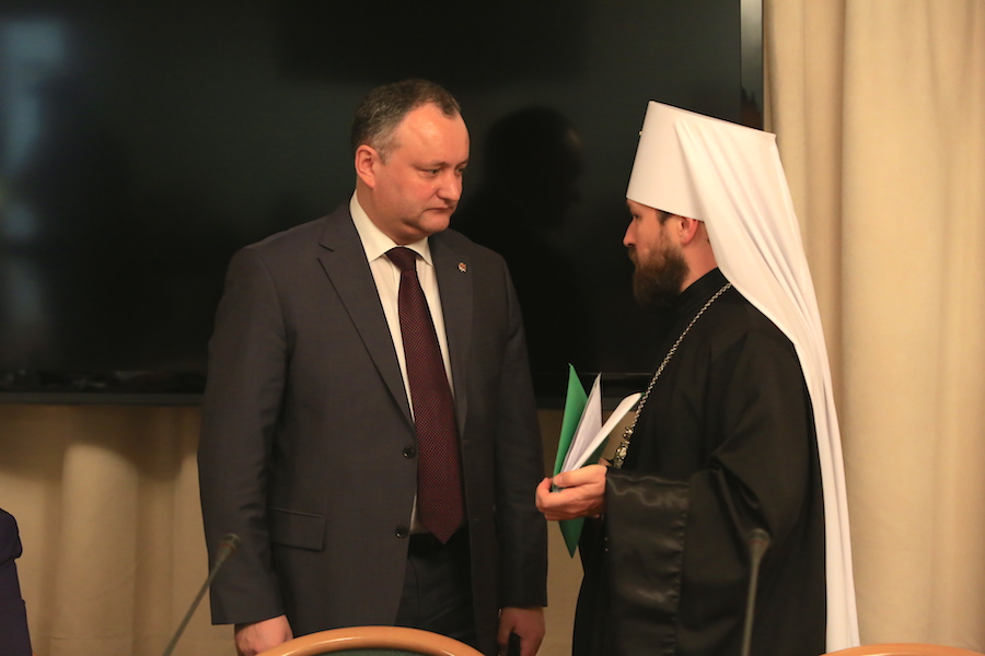 Игорь Додон принял участие в чтениях как лидер партии, выступающей за упоминание в преамбуле Конституции Молдавии православия как традиционной религии молдавского общества.
