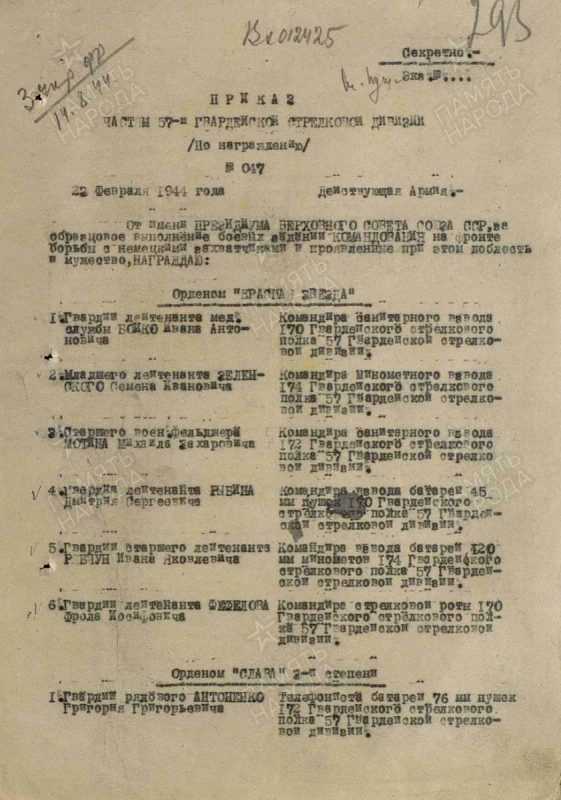 Семен Зеленский был дважды награжден Орденом «Красной Звезды» за уничтожение фашистов.