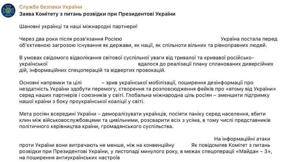 «Москва планирует распространять панические настроения и уныние среди украинцев, ссорить Киев с союзниками, срывать поставки оружия и мобилизацию. По их замыслу, на первую половину июня ситуацию в нашем государстве удастся расшатать и тогда, воспользовавшись этим, Украине будет нанесено военное поражение на востоке, в этом и есть ключевая идея их операции», - говорится в сообщении.