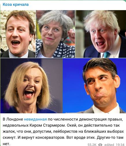 Уже сейчас очевидно, что Франция уйдет от поддержки Украины, прогнозируют аналитики украинского телеграм-канала «ЗеРада». Убеждены они и в том, что Британию ждет серьезный политический кризис, и к власти могут прийти правые, которые выступают против помощи Киеву.